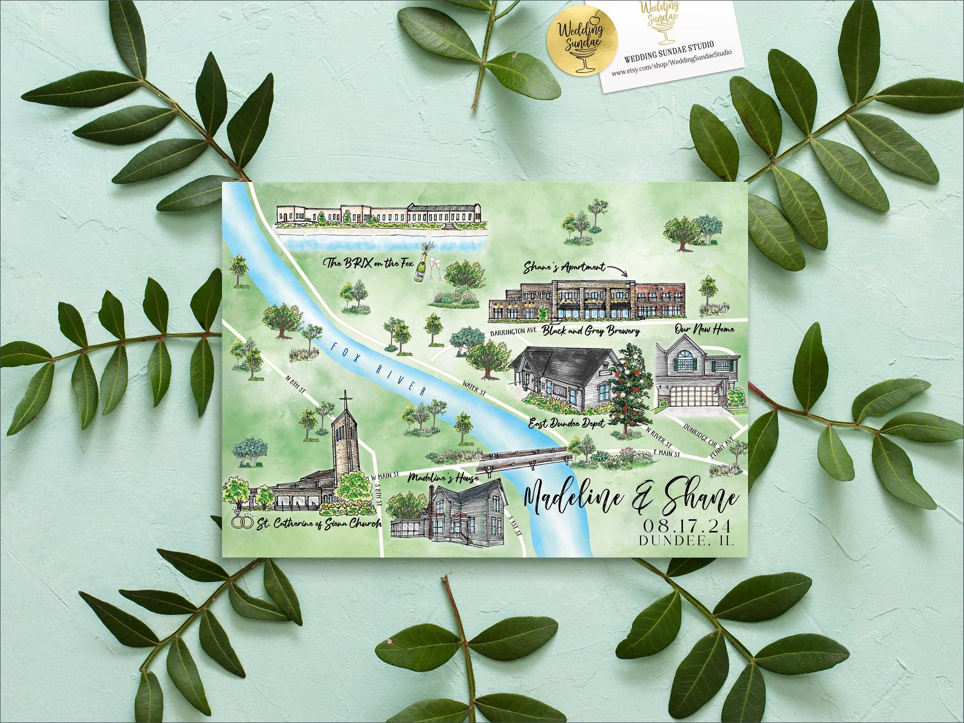 PLEASE NOTE: This listing is for a wedding map that includes 6-7 locations.